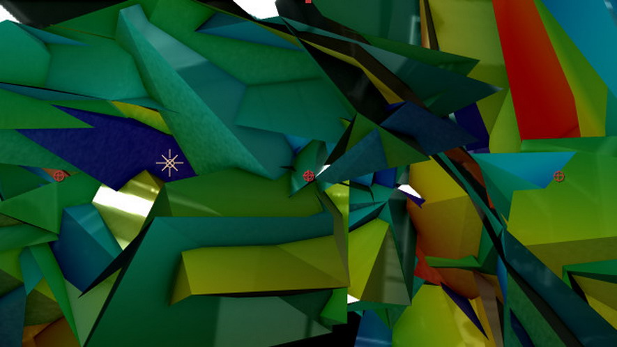 17. Rendering 옵션에서 Draw 값을 Fill로 하고, Blend를 Add로 설정하면, 그림처럼 많은 조각난 면들이 수없이 겹쳐져서 보여지는 느낌으로 보일 것입니다.