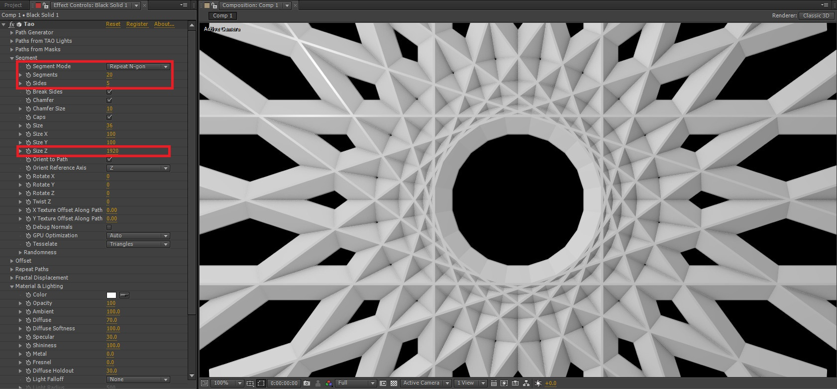 03. 반드시 정해진 수치값으로만 입력하지 말고, 이런 저런 값들을 입력해 보기 바랍니다. 각각의 설정값들을 다르게 입력해보고, 그것에 따라서 오브제가 변화되는 것들을 확인해 보면서 원하는 형태를 얻길 바랍니다.